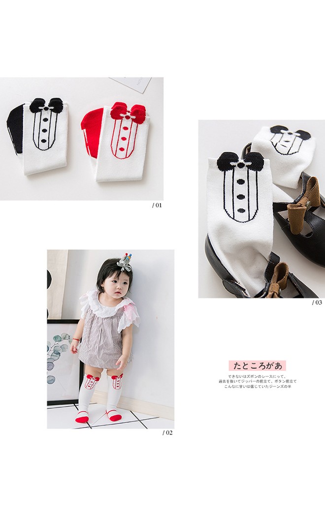 ถุงเท้าเด็กแบบยาวลายรองเท้าผูกโบว์