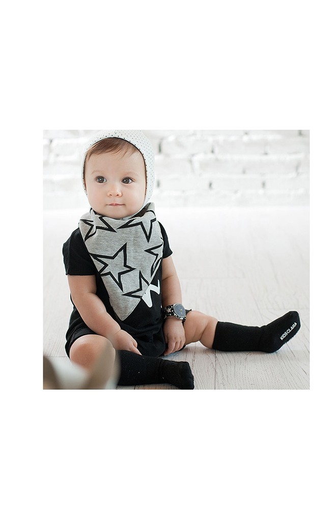 ผ้ากันเปื้อนลายดาวดวงใหญ่ อีกด้านเป็นลายสัตว์และอักษร สามารถใส่ได้ทั้งสองด้าน ขนาดกว้าง 45 ซม. สูง 26 ซม.