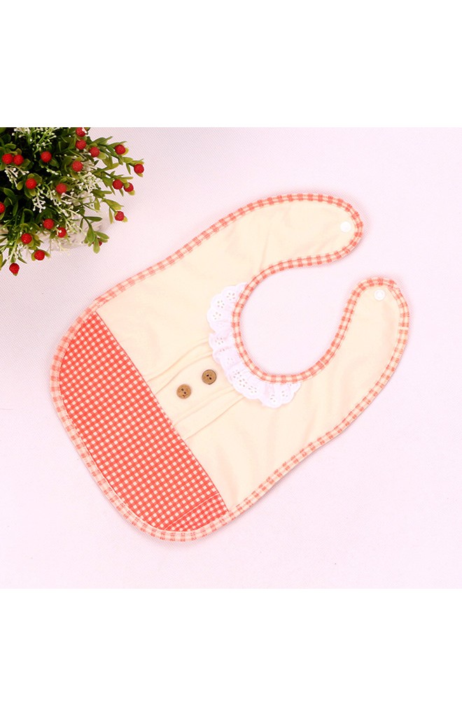 ผ้ากันเปื้อนเด็กแพ็ค 3 สี ลายตารางแต่ผ้าฉลุและกระดุม