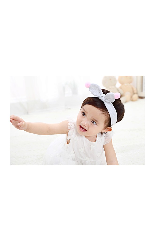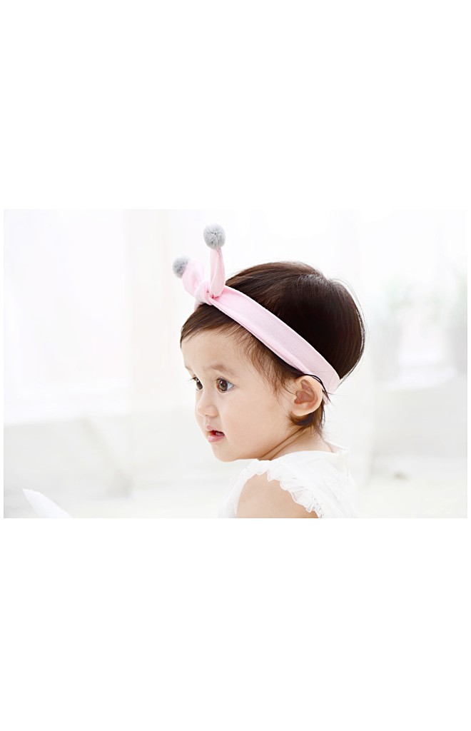 ผ้าคาดผมโบว์กระต่ายปลายแต่งปอมปอม