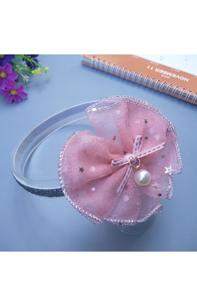 ผ้าคาดผมโบว์ระบายหวานลายดาว ตรงกลางแต่งมุกเทียม สายคาดเลื่อม เฮดแบนด์น่ารักๆ แบบใหม่ล่าสุด มีให้เลือก 4 สี ชมพูนู้ด เทา เขียว และ ชมพูอ่อน