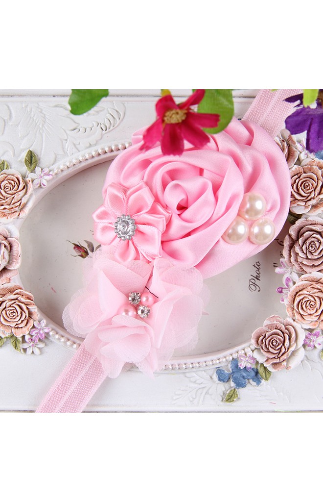 สายคาดผมดอกกุหลาบใหญ่และดอกเล็กๆ 2 ดอกแต่งเป็นช่อสวย สายคาดผมสไตล์ยุโรปหวานๆ สายคาดศีรษะ: เส้นรอบวง 36 ซม. สำหรับเด็กอายุประมาณ 3 เดือน - 2 ปี