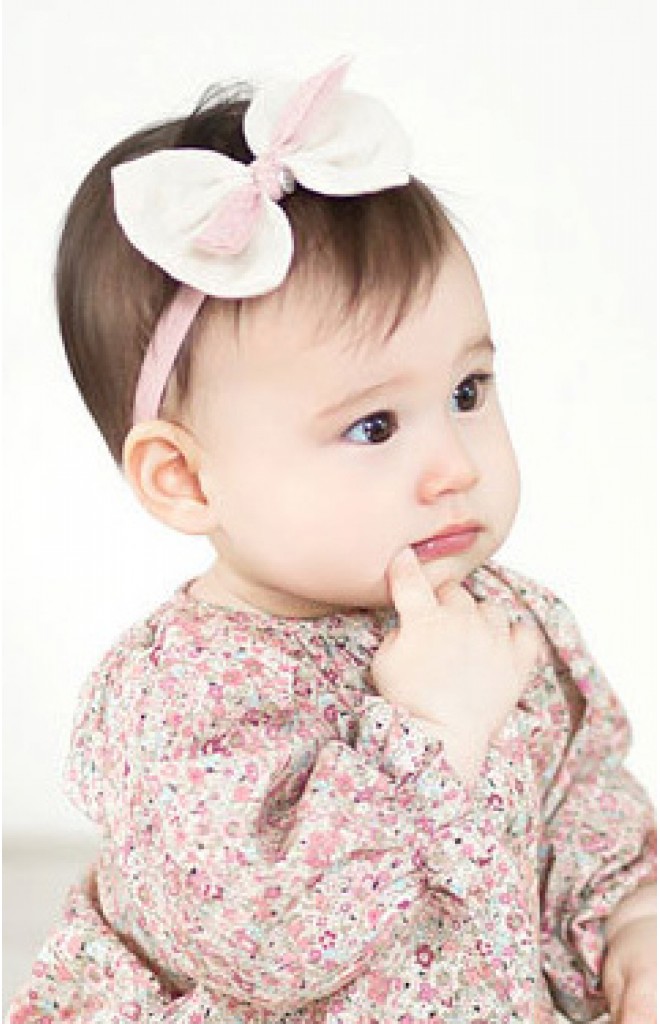สายคาดโบว์สีครีมสายคาดสีชมพูหวาน ใส่แล้วน่ารักมากๆ ค่ะ สำหรับเด็กหญิงรอบศีรษะ 38-50 ซม. หรืออายุ 6 เดือน - 2 ปี
