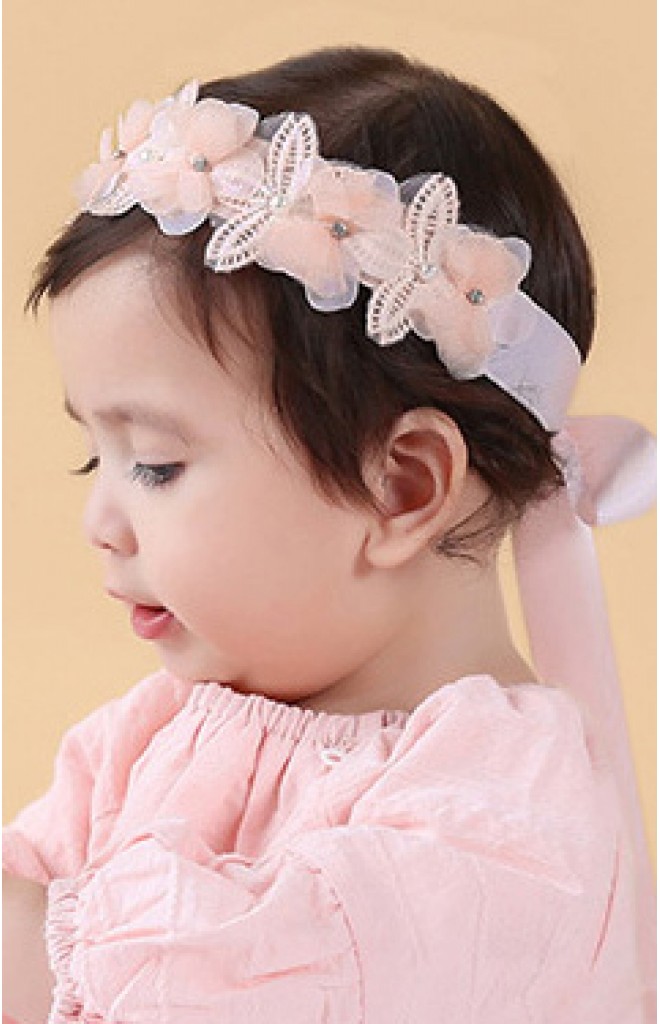 สายโบว์คาดผมแต่งดอกไม้ผ้าชีฟองและลูกไม้ ชายโบว์ยาว angel neitiri