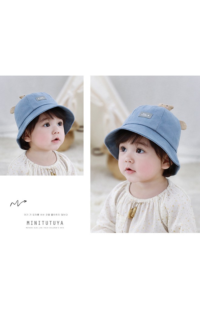 หมวก Bucket แต่งหมีน้อยน่ารัก ผ้านุ่มงานสวย หมวกเด็กปีกรอบน่ารักแบบใหม่ล่าสุดจากแบรนด์ TUTUYA ใส่ได้ทั้งเด็กชายและเด็กหญิง มีให้เลือก 3 สี ฟ้า เบจ และ ชมพูขนาดหมวก: