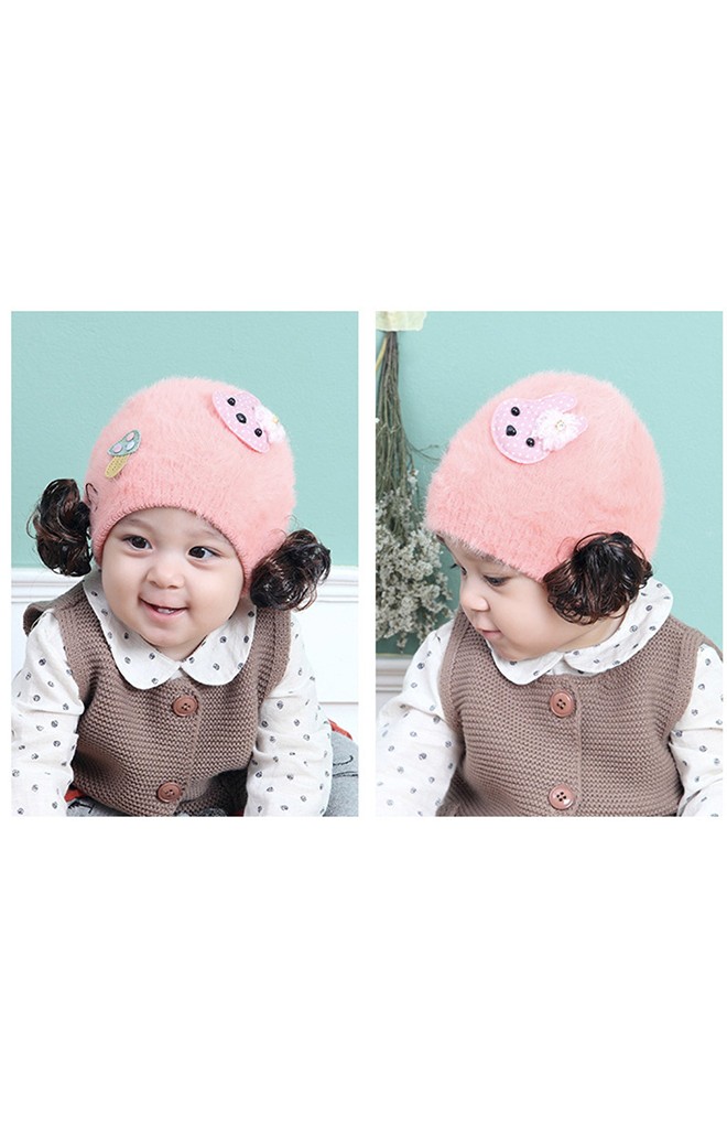 หมวกปอยผมไหมพรมกำมะหยี่ แต่งรูปกระต่ายน้อย หมวกสาวน้อยแบบใหม่ล่าสุดจาก TIANYIBEAR ใส่ช่วงฝนและฤดูหนาวแล้วอุ่นและน่ารักมากๆ ค่ะ มีให้เลือก 4 สี เหลือง ชมพู ชมพูพีช และ ชมพูเข้มขนาดหมวก: