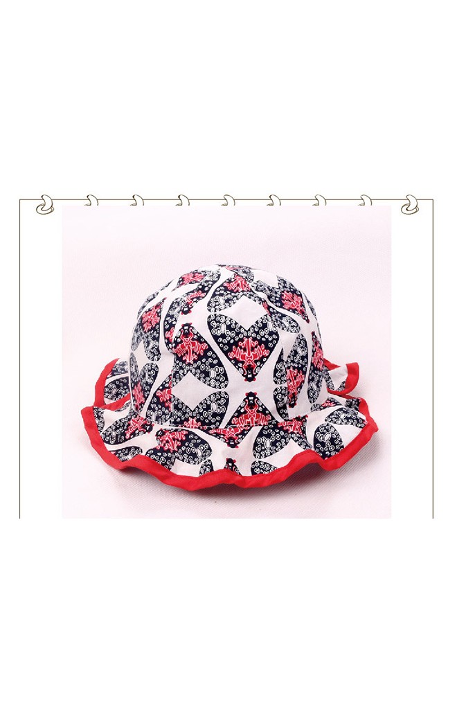 หมวกสาวน้อยลายหัวใจ ชายระบายหวานๆ กุ๊นขอบสีเข้ม