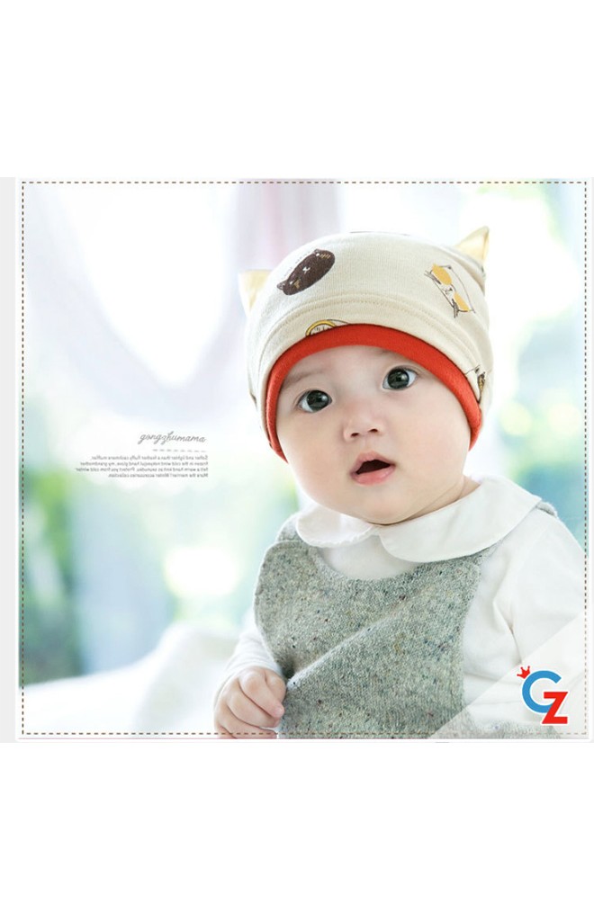 หมวกบีนนี่เด็กลายแมวแต่งหูน่ารักๆ ตัดขอบสีเข้ม GZMM ผ้านุ่ม ยืดหยุ่นใส่สบาย รอบหมวก 38 ซม. ยืดได้ประมาณ 48 ซม. สำหรับเด็กอายุประมาณ 3-12 เดือน ใส่น่ารักได้ทั้งเด็กชายและเด็กหญิง มีให้เลือก 3 สี แดง เหลือง และ เบจ