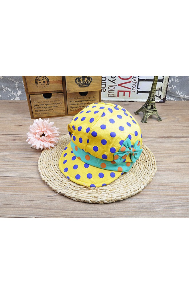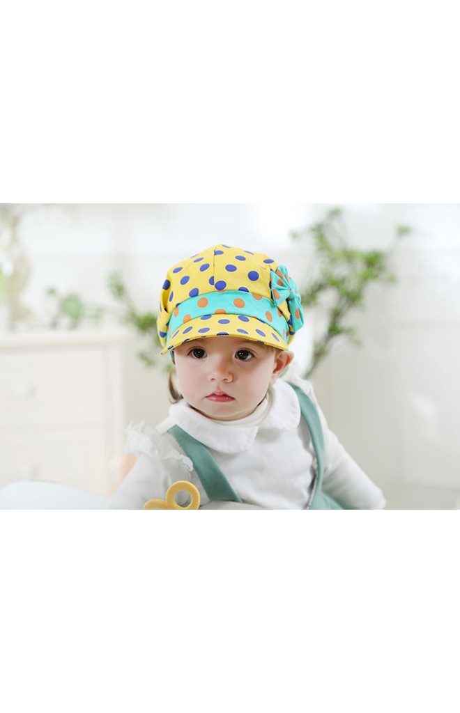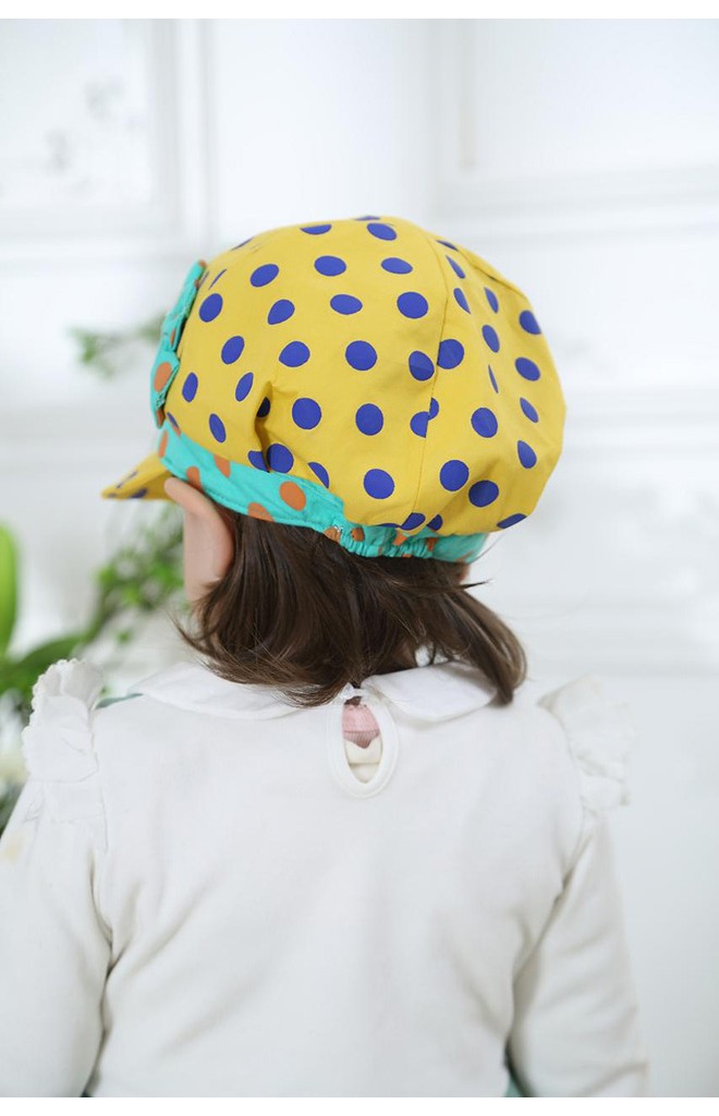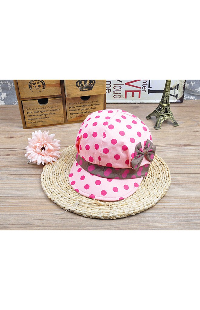 หมวกเด็กหญิงสกรีนลายจุด คาดขอบหมวกสีเข้ม แต่งโบว์น่ารักๆ