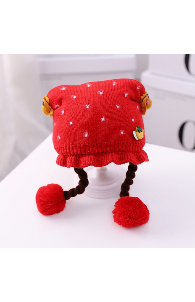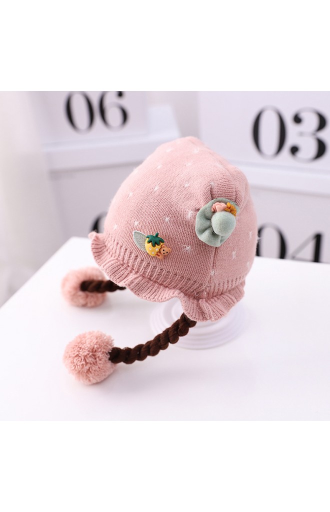 หมวกเปียชายระบาย ด้านหน้าแต่งสตรอว์เบอรี่และหมีน้อย หมวกไหมพรมสาวน้อยแบบใหม่ล่าสุด ด้านในซับผ้ายืด มีให้เลือก 4 สีสวยๆ แดง เหลือง ส้ม และ ชมพูขนาดหมวก: รอบหมวก 27 ซม. ยืดได้ประมาณ 44 ซม. สำหรับเด็กหญิงแรกเกิด-4 เดือน
