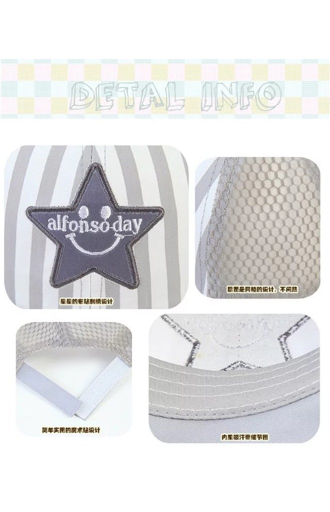 หมวกแก๊ปด้านหน้าลายทางปักดาว ด้านหลังผ้าตาข่าย จาก KUKUJI