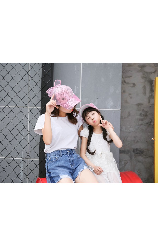 หมวกแก๊ปด้านหลังแต่งหูกระต่ายใหญ่ผูกโบว์ ด้านหน้าแต่งอักษร M หมวกสวยๆ คุณแม่จัดไปใส่คู่กับลูกสาว หรือใส่เดี่ยวก็สวยเด่นมากๆ ค่ะ ด้านหน้าลายเกล็ดเลื่อมด้านหลังผ้าตาข่าย มีให้เลือก 3 สี ดำ ชมพู และ ขาว มีให้เลือกไซส์ผู้ใหญ่ และ ไซส์เด็กโตขนาดหมวก:
