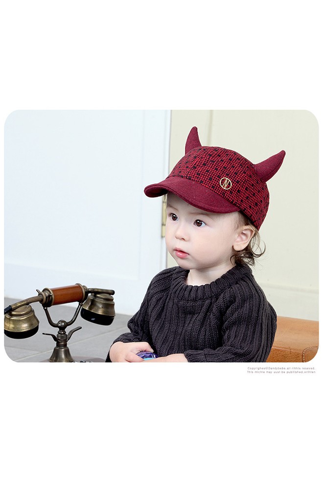 หมวกแก๊ปผ้าทอเนื้อหนาลายสก๊อต แต่งเขาเท่ๆ ปีกหมวกโครงอ่อนพับได้ หมวกน่ารักๆ แบบใหม่ล่าสุดจาก KUKUJI มีให้เลือก 4 สี ไวน์แดง ดำ เทา และ กาแฟขนาด: