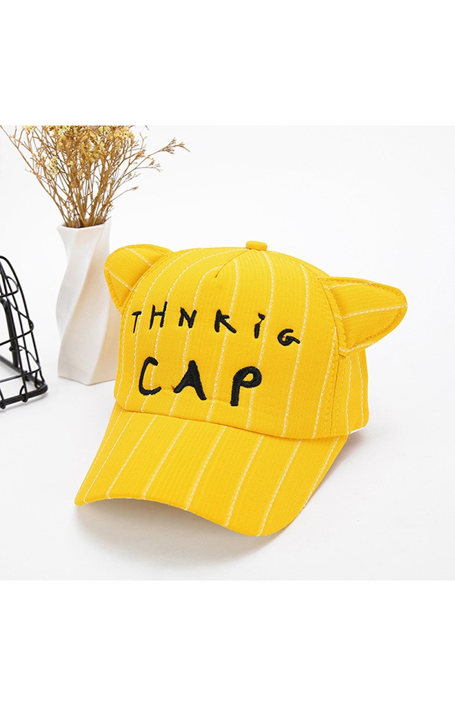 หมวกแก๊ปเด็กลายทางแต่งหู ด้านหน้าปัก THNKiG CAP จาก KUKUJI