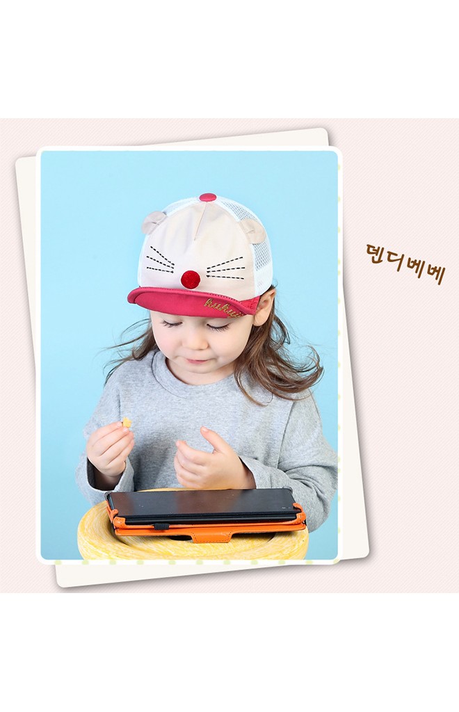หมวกแก๊ปเด็กหน้าแมวแต่งจมูกกลมและหูน่ารัก ปีกหมวกโครงอ่อนพับได้ ใต้ปีกหมวกปักอักษร kukuji ด้านหลังผ้าตาข่ายระบายอากาศได้ดี หมวกเด็กน่ารักจาก KUKUJI มีให้เลือก 4 สี เบจ เทา ฟ้า และ แดงขนาดหมวก: