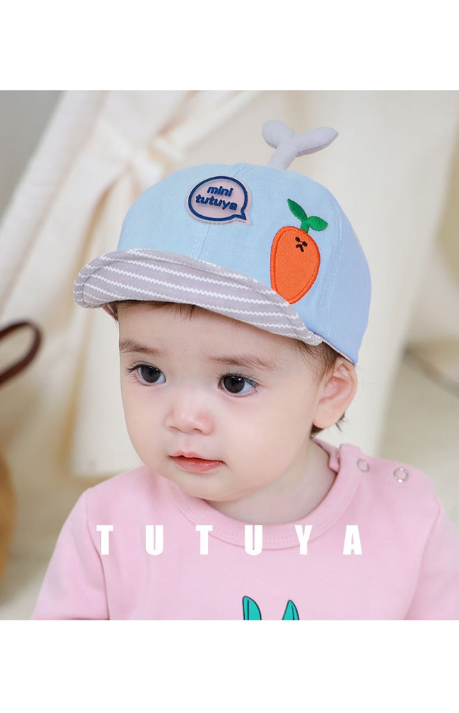 หมวกแก๊ปแต่งผลส้ม ปีกหมวกลายขวางเสริมโครงอ่อนพับได้ หมวกเด็กแบบใหม่ล่าสุดจาก TUTUYA ใส่ได้ทั้งเด็กชายและเด็กหญิง มีให้เลือก 3 สี ฟ้า น้ำตาลอ่อน และ เทาขนาดหมวก: