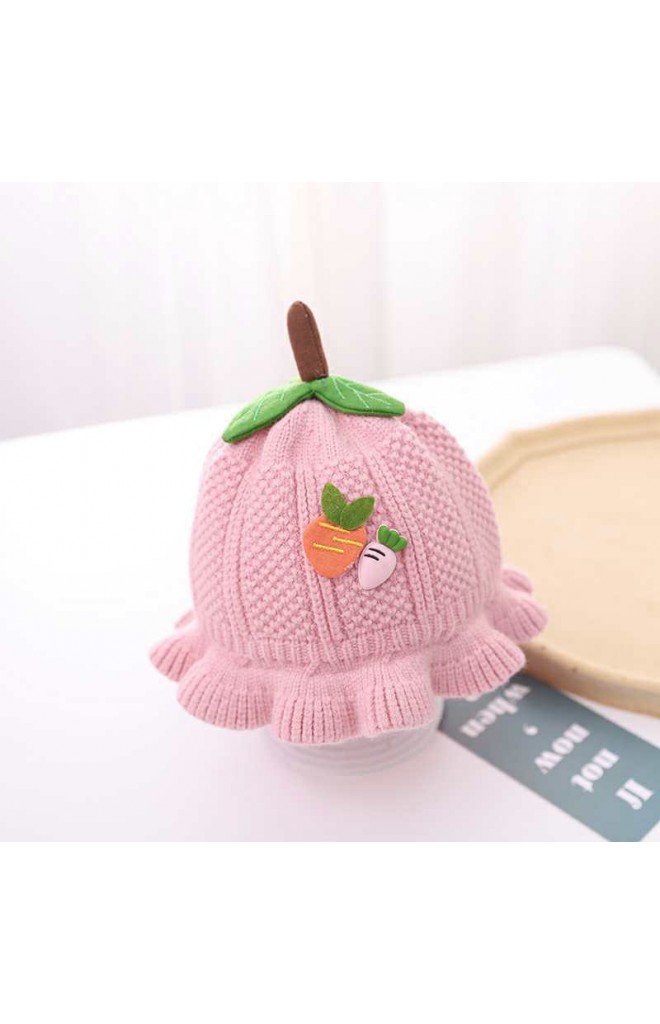 หมวกไหมพรมผลไม้ด้านหน้าแต่งแครอท
