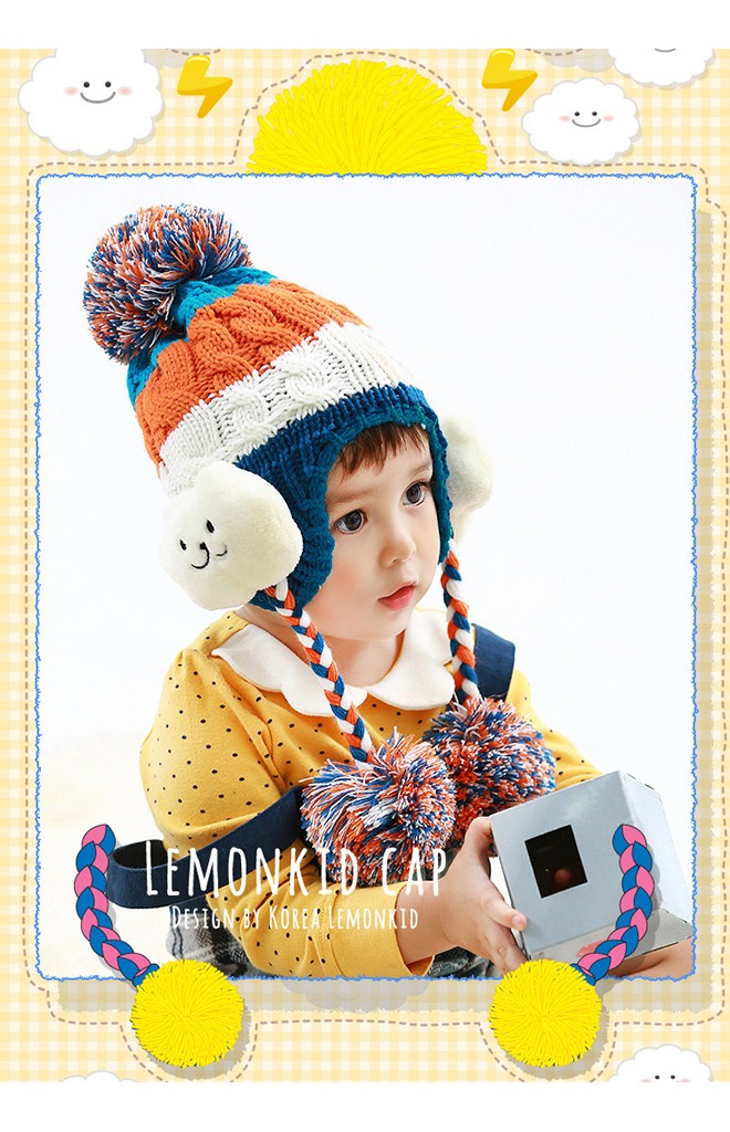 หมวกไหมพรมลายรุ้งสลับสี ด้านข้างหูแต่งตุ๊กตาเมฆน้อย ด้านบนแต่งปอมปอม และสายเปียห้อยปอมปอม ด้านในมีซับผ้านุ่มๆ ใส่แล้วอุ่นมากๆ จากแบรนด์ kocotree หนาวนี้เด็กไม่ควรพลาดเลยนะคะ ใส่แล้วน่ารักสุดๆ พร้อมส่งสี น้ำตาล, ฟ้า, แดง ค่ะ