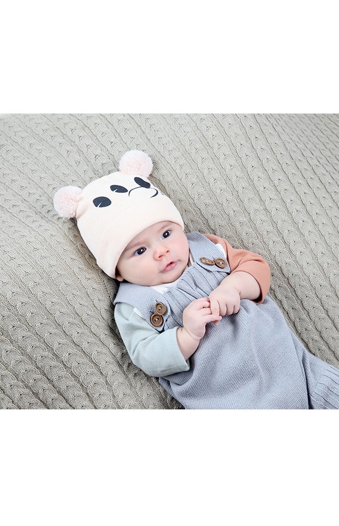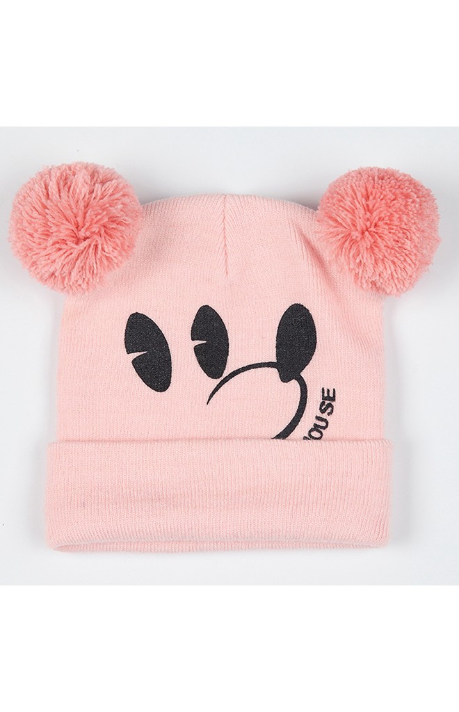 หมวกไหมพรมสกรีนมิกกี้แต่งปอมปอม