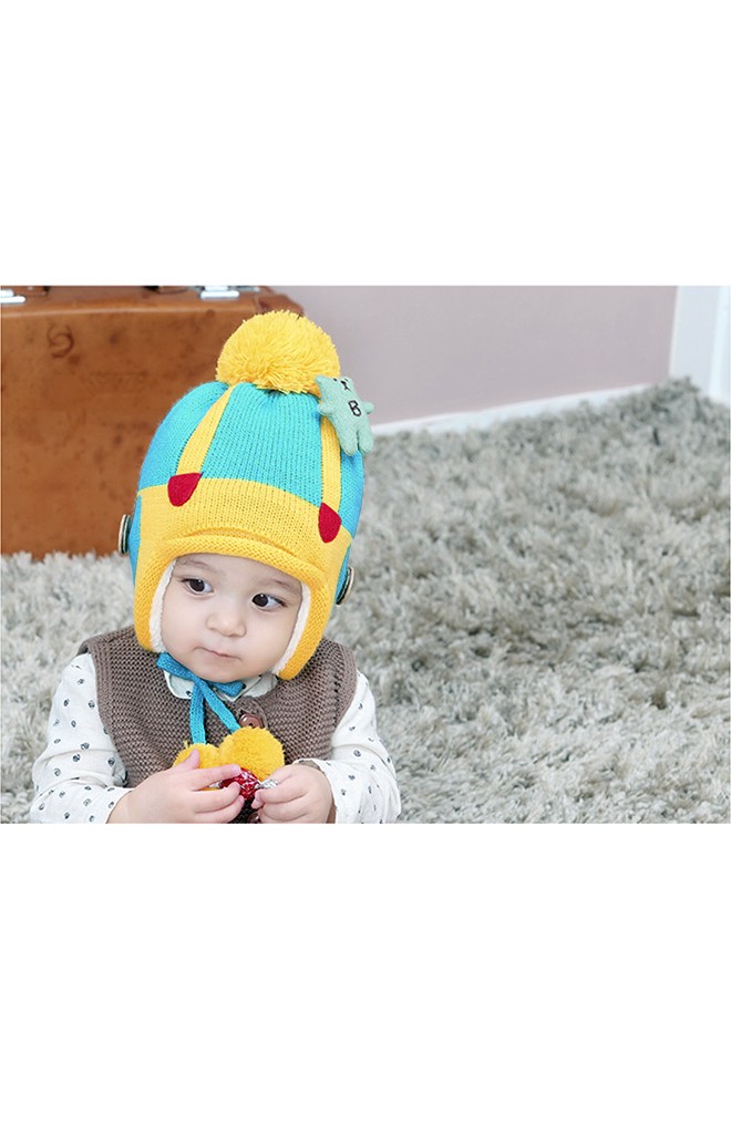 หมวกไหมพรมแต่งตุ๊กตาหมีน่ารัก มีสายห้อยปอมปอมผูกใต้คาง พร้อมซับอุ่นๆ หมวกกันหนาวเด็กสวยๆ ใส่น่ารักได้ทั้งเด็กชายและเด็กหญิง มีให้เลือก 5 สี แดง เหลือง ฟ้า น้ำเงิน และ เทา