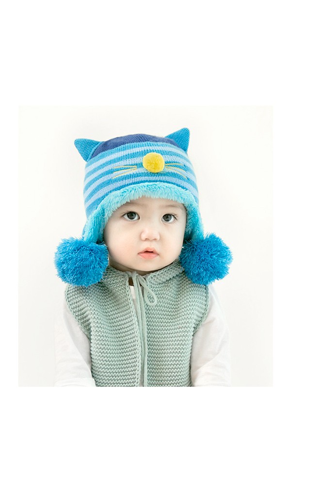 หมวกไหมพรมแมวเหมียวลายขวางห้อยปอมปอม หมวกกันหนาวน่ารักๆ แบบใหม่ล่าสุด จาก GZMM ซับในผ้าขนอุ่นๆ ใส่ได้ทั้งเด็กชายและเด็กหญิง มีให้เลือก 4 สี เหลือง ฟ้า เทา และ กาแฟ