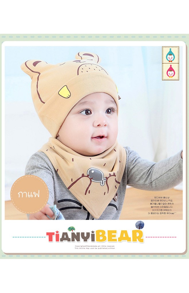 เซ็ตหมวกบีนนี่ผ้ายืดลายหมีมาพร้อมผ้ากันเปื้อน TIANYIBEAR