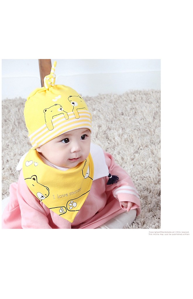 เซ็ตหมวกเด็กพร้อมผ้ากันเปื้อนลายหมี I love mom ดีไซน์น่ารักๆ จาก yoyotree มีหางยาวๆ ไว้สำหรับผูกหรือปล่อยก็น่ารักคนละแบบค่ะ มีให้เลือก 5 สี เหลือง ชมพูอ่อน ชมพูเข้ม แดง และ ฟ้าขนาดหมวก: